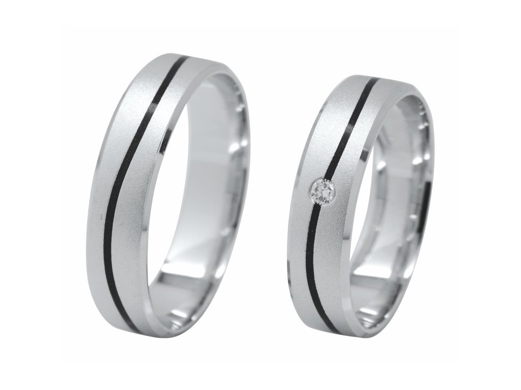 Snubní prsteny z bílého, 14-karátového zlata.Dámský prsten je ozdoben buď zirkonem nebo briliantem.Prsteny lze objednávat v různých velikostech.