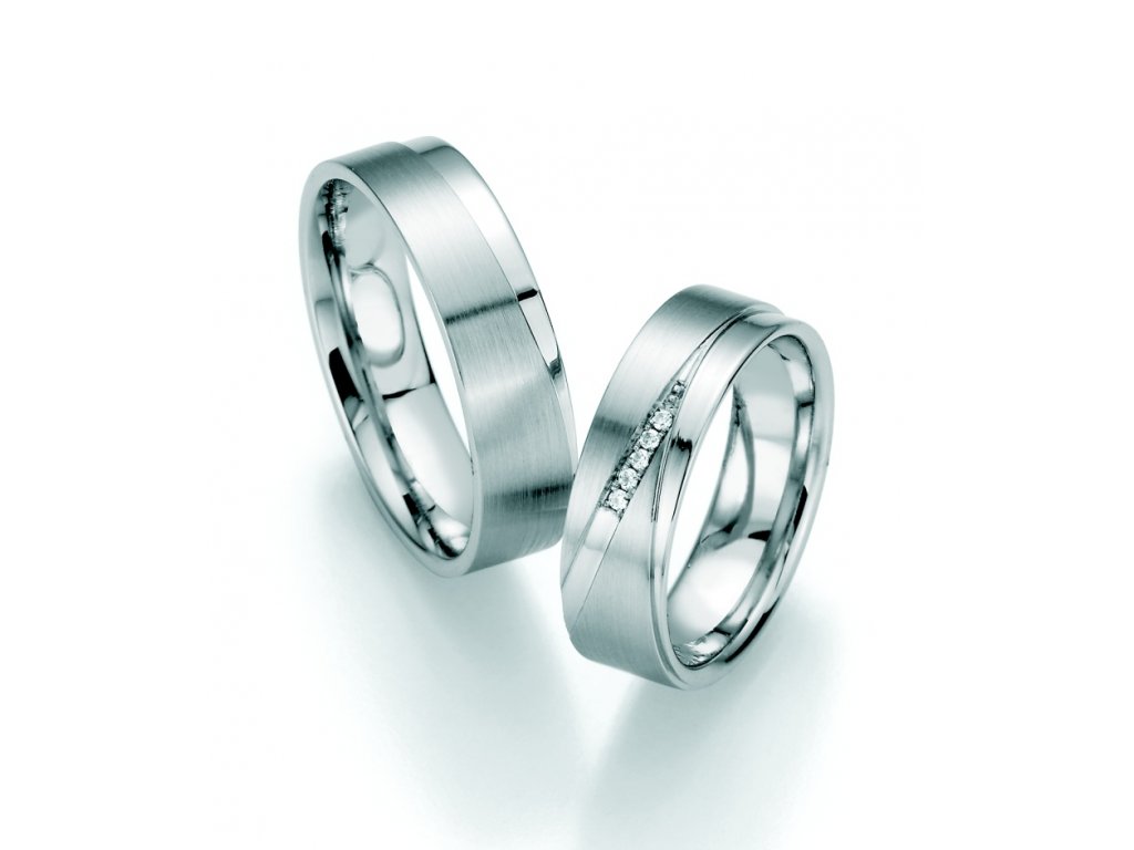 Snubní prsteny z bílého, 14-karátového zlata. Tento model prstenů z nejnovější kolekce New Models je vyroben v Německu. Okouzlující snubní prsteny na kterých Vás oslní moderní design s elegancí.