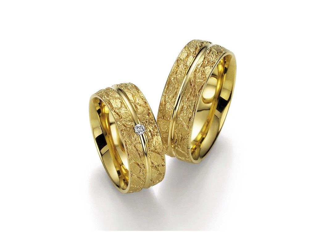 Exkluzivní snubní prsteny ze žlutého, 14-karátového zlata. Tento originální model prstenů vyrobených v Německu Vás na první pohled uchvátí svou dokonalostí.
