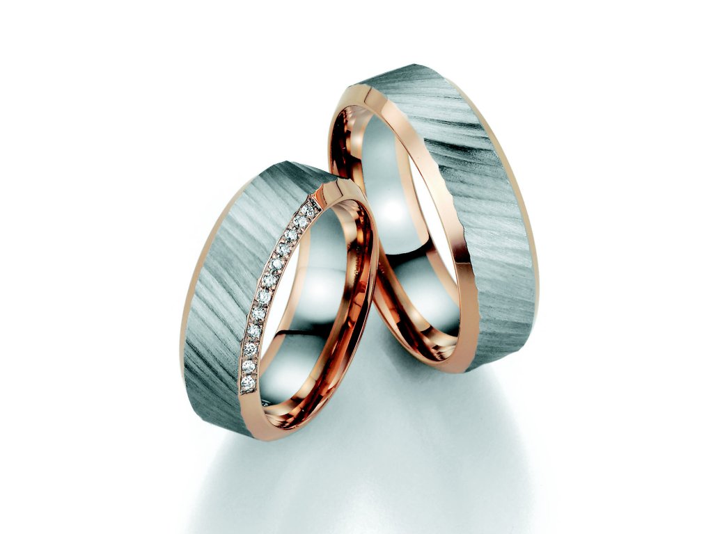 Exkluzivní snubní prsteny z bílo-červeného, 14-karátového zlata.Tento elegantní model prstenů vyrobených v Německu Vás okouzlí svým nevšedním designem.