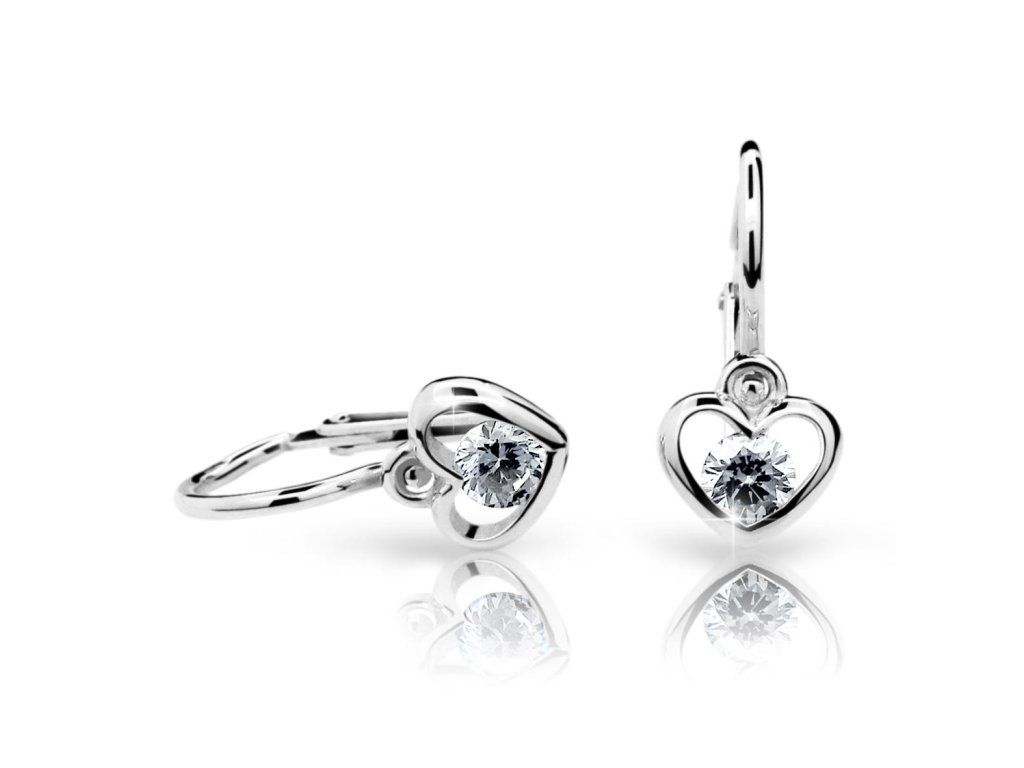 Dětské náušničky ve tvaru srdíček se zirkonkem a bezpečnostní pojistkou. Miminkovské náušničky jsou vyrobeny tak, aby perfektně seděly v oušku i těm nejmenším princezničkám...