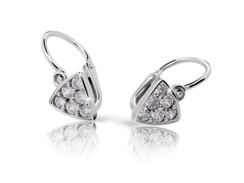 Dětské náušničky ve tvaru trojúhelníčků se zirkony a bezpečnostní pojistkou. Miminkovské náušničky jsou vyrobeny tak, aby perfektně seděly v oušku i těm nejmenším princezničkám...