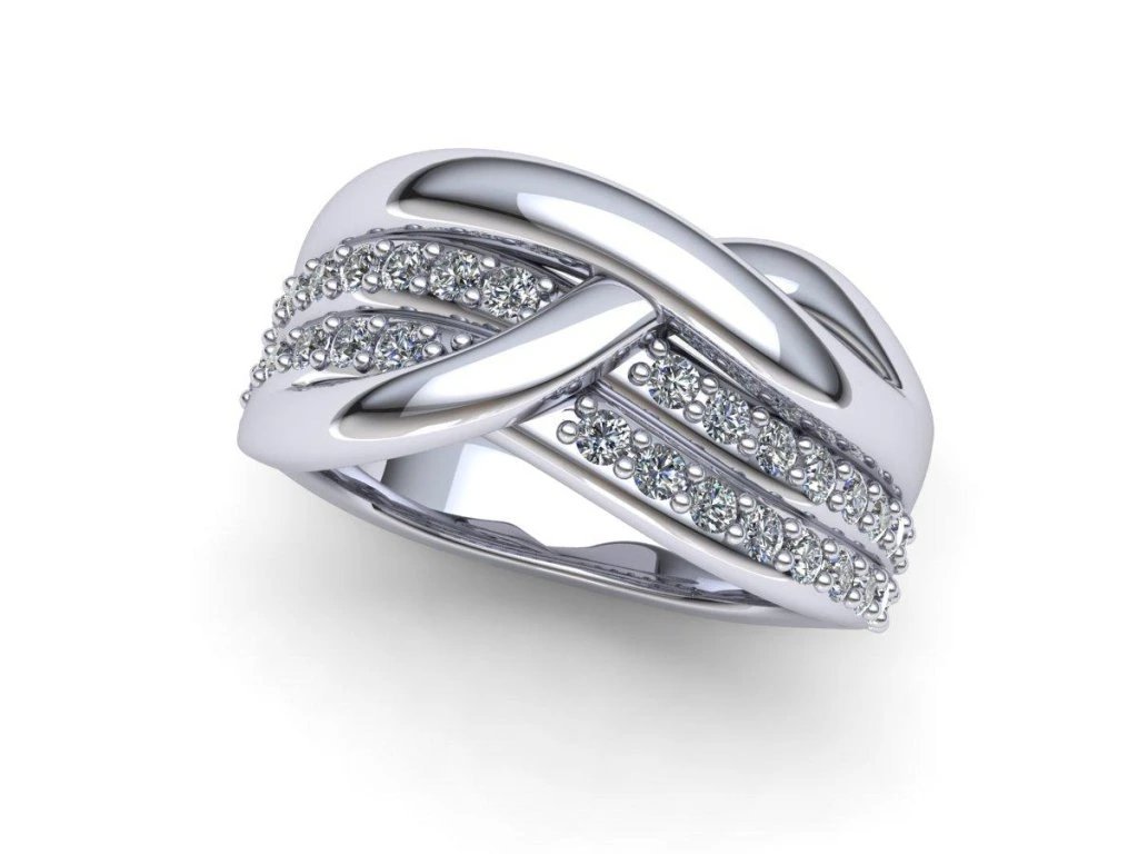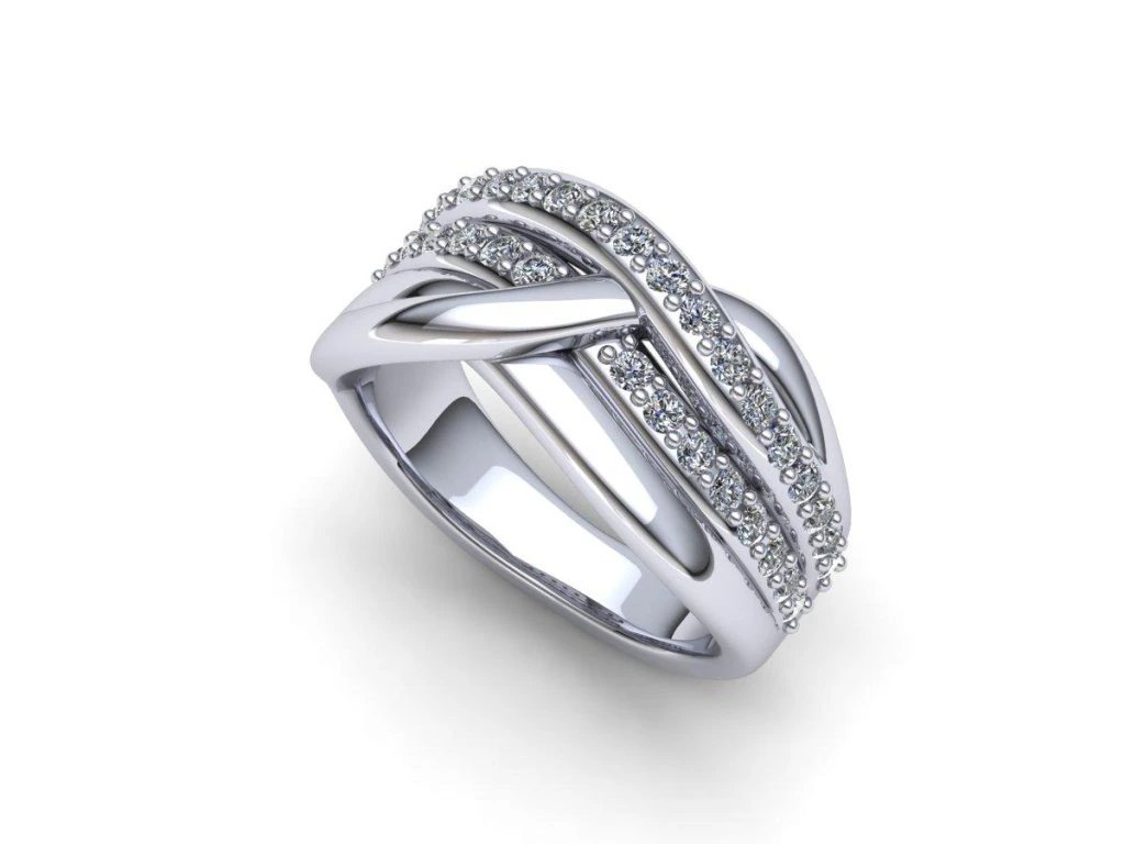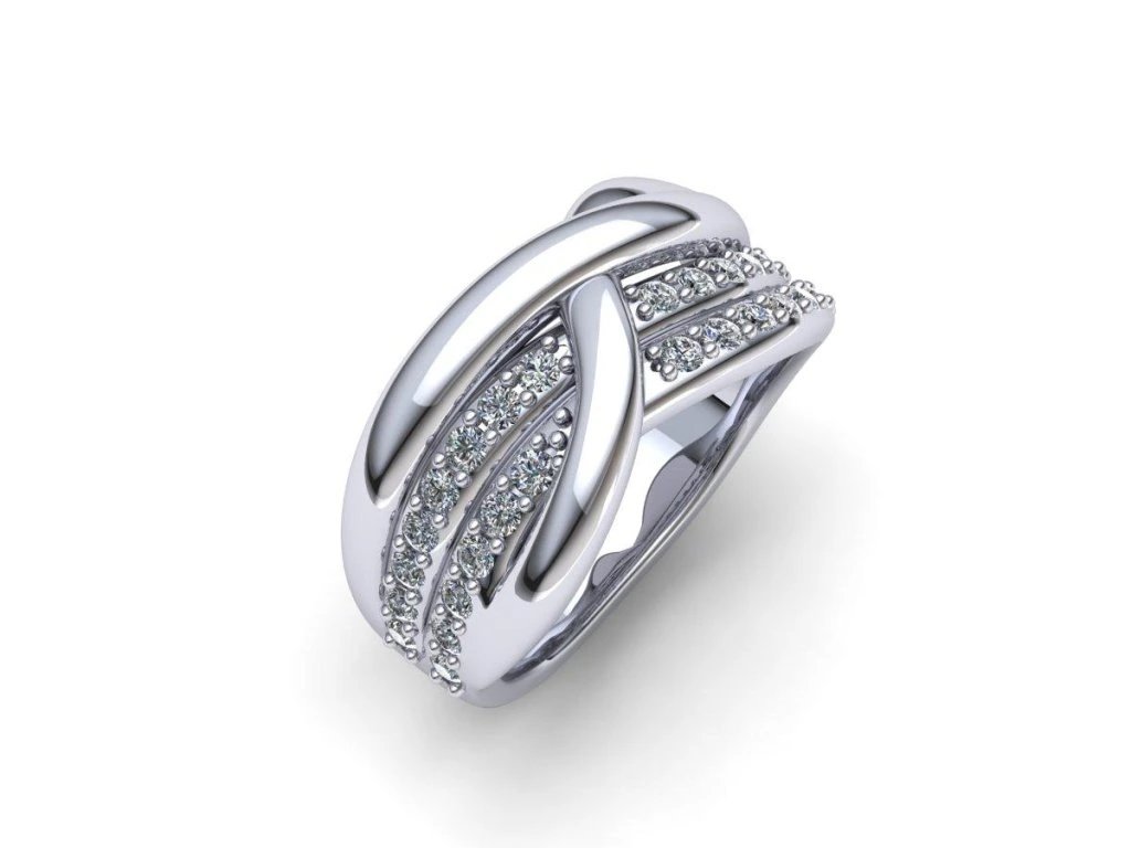 U tohoto nádherného prsten jde zvolit varianta osázení kamenů na spodních páscích a vrchní pásky hladké, nebo druhá varianta osázení kameny na prostředních páscích, Obě varianty vypadají luxusně a rozzáří ruku i úsměv...