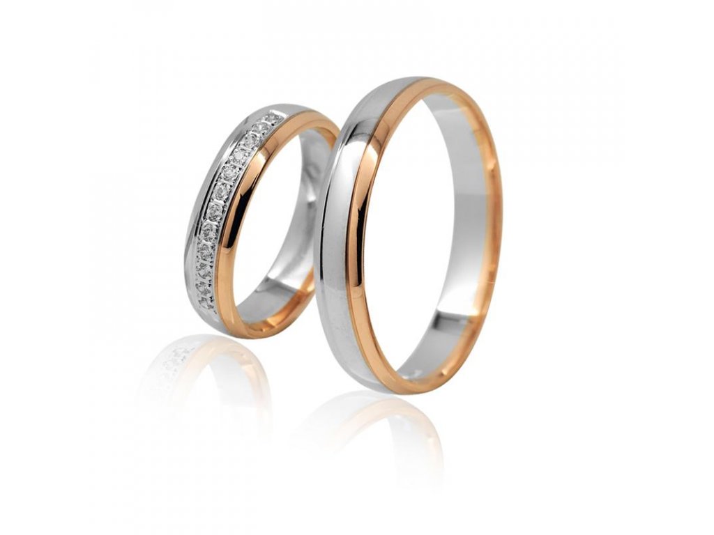 Exkluzivní snubní prsteny z bílého, 14-karátového zlata firmy RETOFY. Dámský prsten je ozdoben buď zirkonem nebo briliantem. Uvedená cena je pouze orientační. Konečná cena se může lišit v závislosti na barvě zlata a povrchu. Lze si zvolit barvu zlata i počet kamenů.