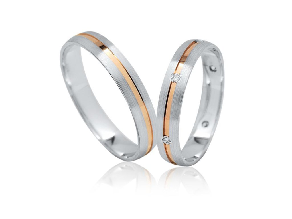 Exkluzivní snubní prsteny z bílého, 14-karátového zlata firmy RETOFY. Dámský prsten je ozdoben buď zirkonem nebo briliantem. Uvedená cena je pouze orientační. Konečná cena se může lišit v závislosti na barvě zlata a povrchu. Lze si zvolit barvu zlata i počet kamenů. Barvy zlata lze kombinovat.